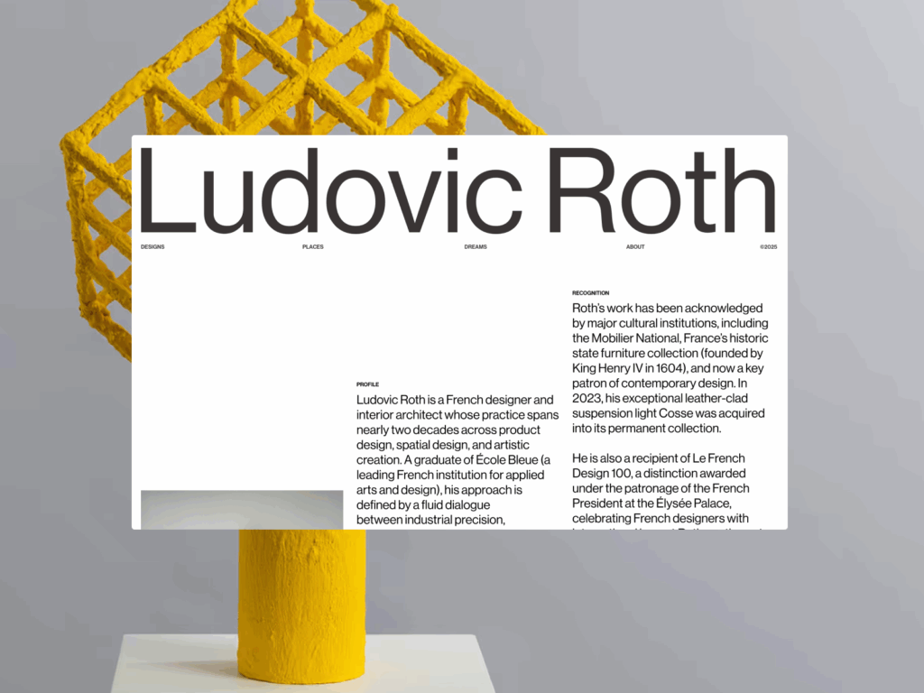 Ludovic Roth is a French designer and interior architect whose practice spans nearly two decades across product design, spatial design, and artistic creation. ludovicroth.com
